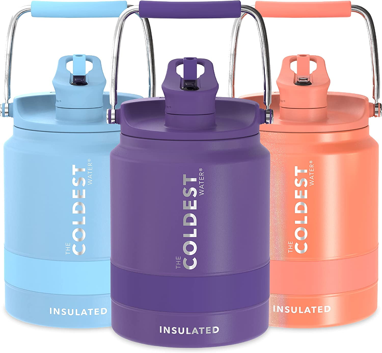 Coldest Sports Water Bottle 1 2 Gallon Straw Lid Leak Proof Vacuum Insulated Stainless Steel Hot Cold Double Walled Thermo Mug Metal Canteen 1 2 Gallon Purple Walmart Com